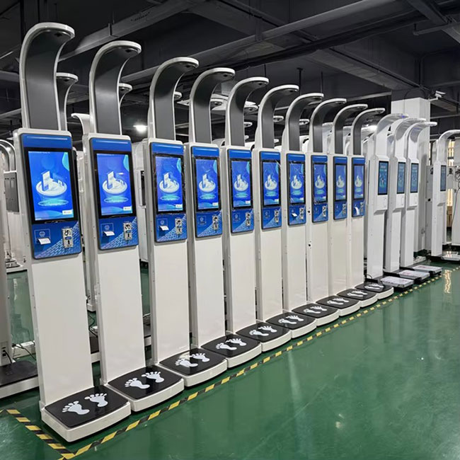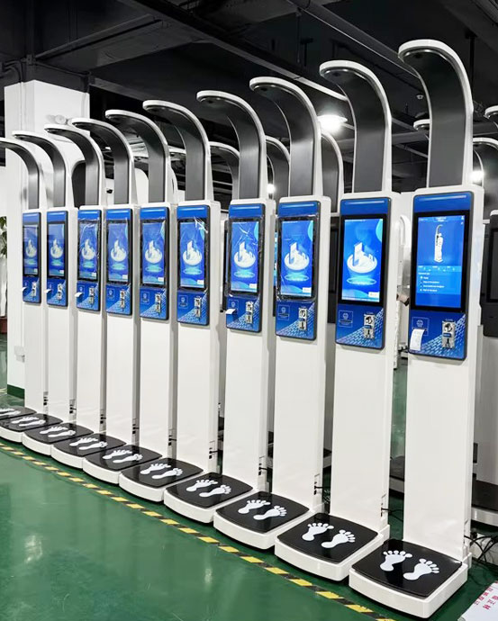 The intelligent height and weight measuring device SH-V15 features a beautiful 19.0-inch color display, an ultrasonic height measuring function, and an intelligent face recognition feature (optional configuration). It can print out receipts containing information such as weight, height, pharmacy name, and body mass index. This high-tech-looking scale is highly suitable for use in hospitals, pharmacies, shopping malls, clinics, etc.